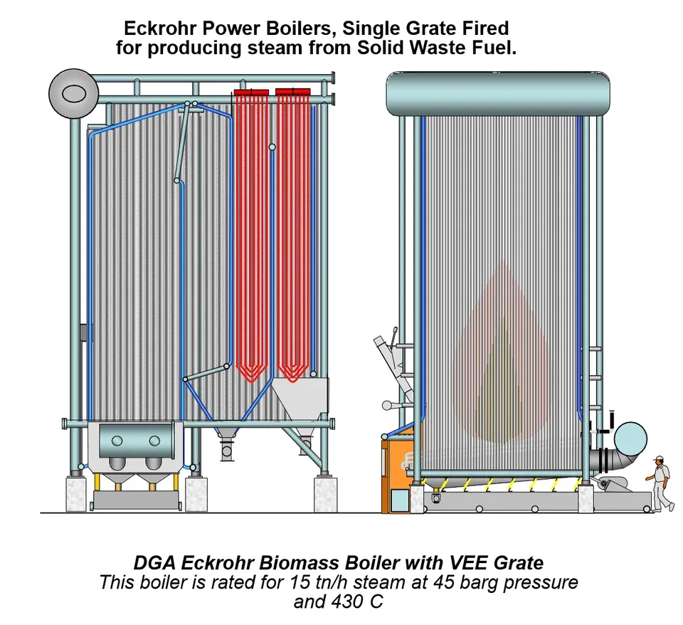 The Steam Plant uses the DGA Vee Grate, DGA or Lodge Cottrell Gas Cleaning, Triveni Steam Turbines and the DGA/ERK boiler.